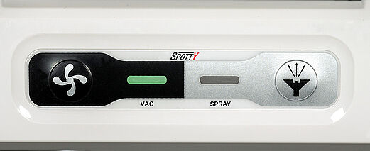The spray and suction functions can be switched on and off individually via the control panel on the machine.